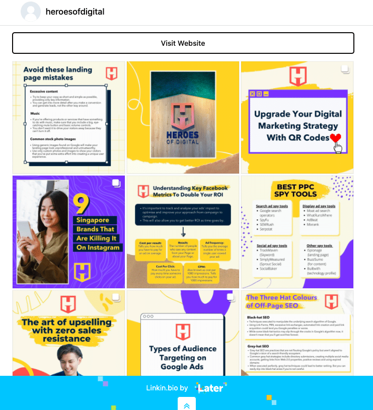 The Linkin.bio feature by Later allows you to add multiple links by recreating your Instagram feed on your landing page. It works by letting you assign an unlimited number of links to your feed posts and one single link in your bio.