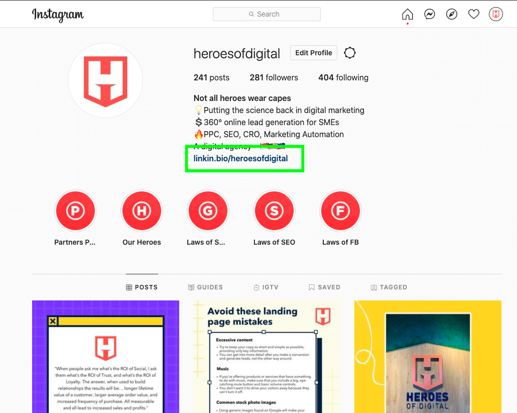 When people click on your bio link, it directs them to a landing page where they see a recreation of your Instagram feed. Then, they’ll be able to click on the link that you’ve inserted in a post.